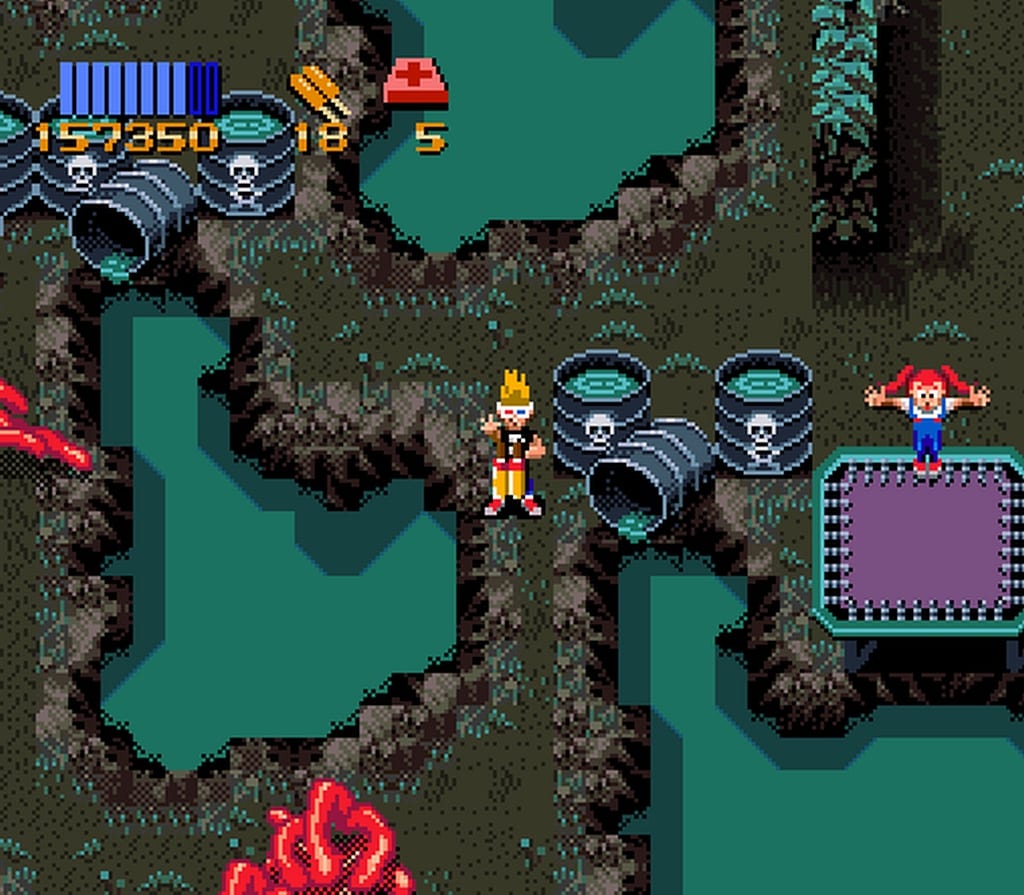 The game launched for the SNES and Genesis in 1993, bringing 48 punishing stages to play through. The premise is pretty simple. You choose one of two characters (or both for some co-op action) with the sole task of rescuing your neighbors from hordes of various enemies. Beyond zombies, you’ll face down all manner of monsters culled from horror movies; and one gigantic baby.