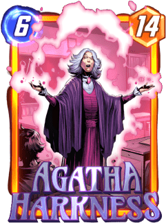 Even more surprising, though, was the update to a card that, until now, has largely been considered nothing but a joke card. In accordance with the release of the new series Agatha All Along (whose first two episodes can be seen September 18th on Disney+), Second Dinner has changed the titular Agatha Harkness from a card that famously would play all of the cards for you, and usually quite poorly, into a card that now merely co-pilots your deck, taking control to play on even-numbered turns only.