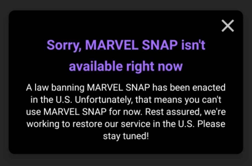 Unfortunately, MARVEL SNAP is temporarily unavailable in U.S. app stores and is unavailable to play in the U.S.