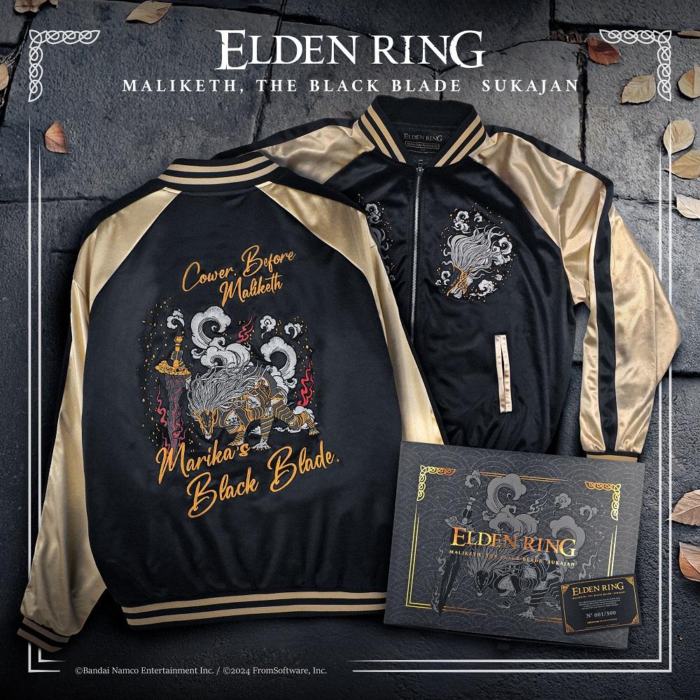 Cower before Malekith, Marika’s Black Blade! These words of warning can be yours on a stylish sukajan-style jacket, now available in limited quantities from the Bandai Namco Official Store. Crafted from a premium blend of 90% polyester and 10% spandex, the jacket delivers a sleek and comfortable fit with a design which perfectly complements the dark, powerful imagery of Maliketh. Meticulously embroidered on the front and back with illustration of Maliketh, the superior craftsmanship of the jacket is presented in a premium inner box and comes with a numbered certificate of authenticity.
