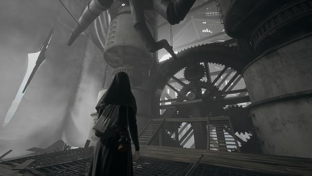 Even better is the fact some of the more apparent puzzles are visual set pieces in themselves (e.g. such as moving giant pieces of a bridge while people yell at you, or a piano that slams against the wall as you shift an entire room). The game also has a prayer element where the world will rip apart in darkness, but be pulled together when Indika prays, which will have you traversing the environment in both aspects as platforms open up.