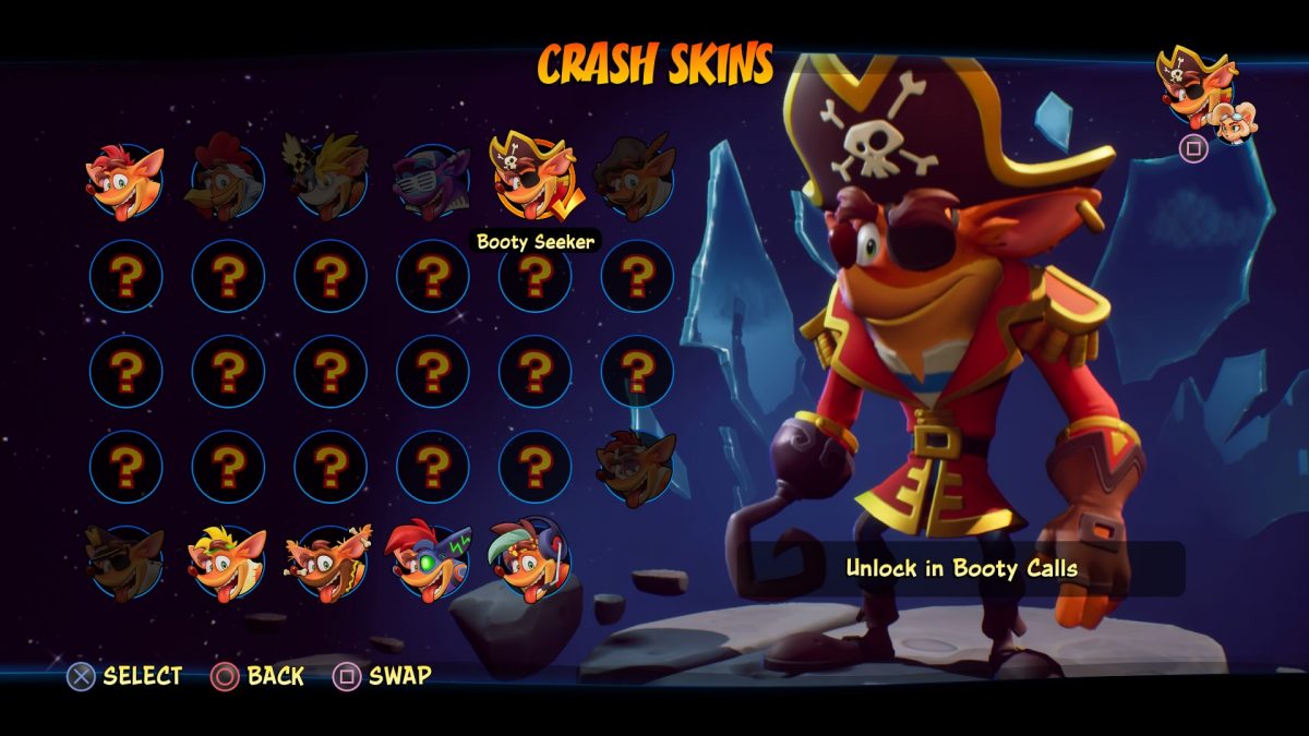 Skins aren’t accessible in Bandicoot Battle and they very much should be. What better reason for us to collect all of these skins than to individualize our Bandicoot for party play? It’s just a great incentive. Does it add anything? Not really. It doesn’t let us play any better, but it lets the player attach themselves more to the game if they can customize their character. Win, lose or draw, if my Crash can be a Pirate or my Coco can use the Papercut skin, I’d want to do that.