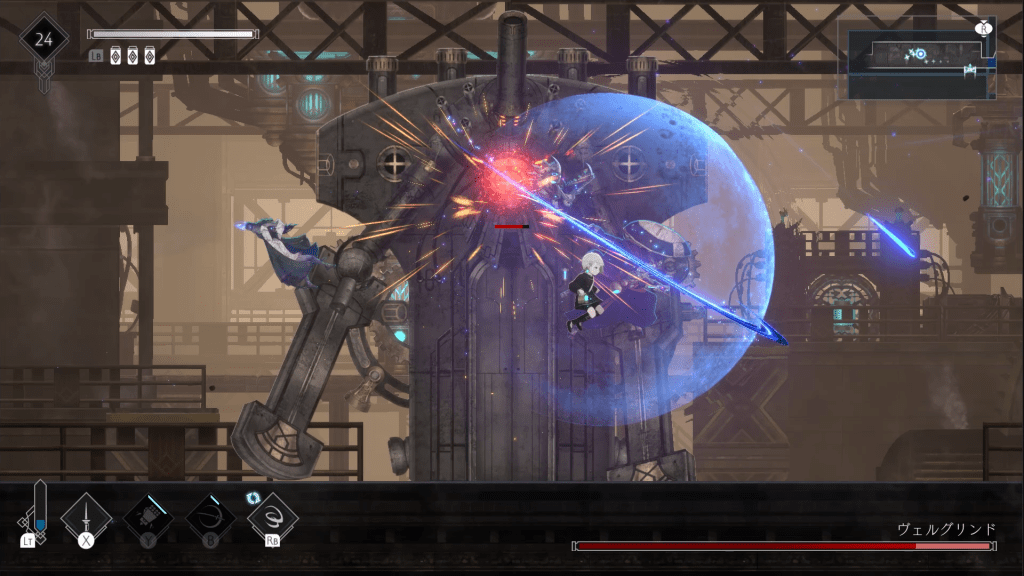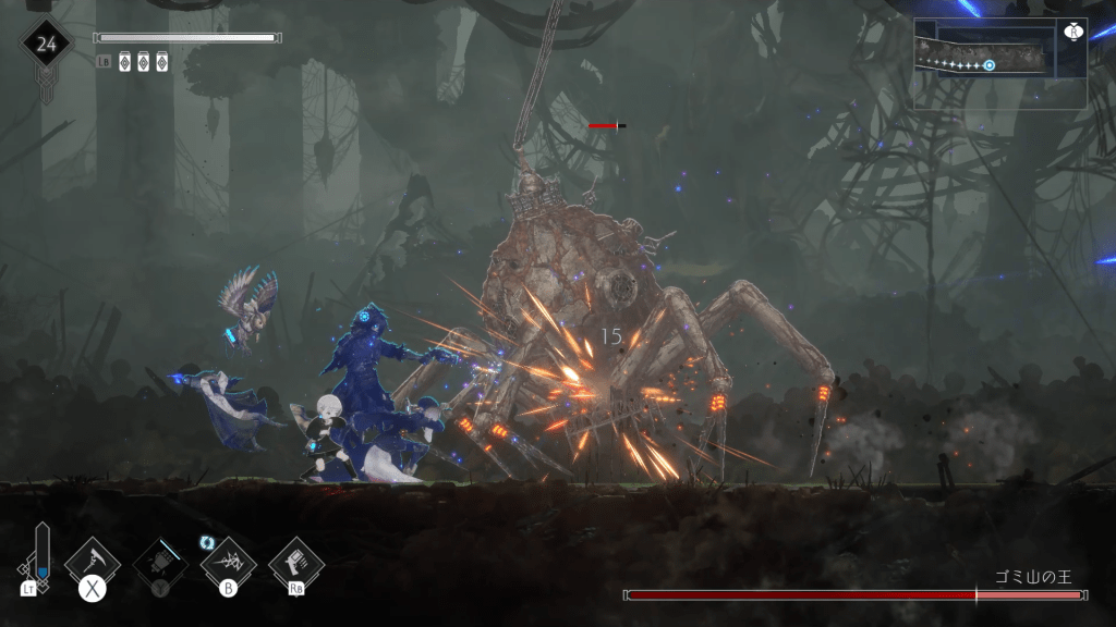 After thoroughly exploring the area, a boss fight is eventually reached before the story can continue, and this is where Ender Magnolia really shows its greatness. These fights, from the very beginning, are an exercise in patience. As with Ender Lilies, the boss monsters fight with consistent attack patterns, with the key to victory being to memorize these patterns and slowly deal damage until they are taken down.