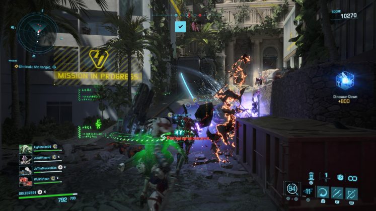 The PvP missions are a bit more challenging, as you complete missions you also face off against the enemy team. This mode made the game feel even more intense, as you are trying to complete your missions, in certain areas of the maps you will run into the enemy team, and then all hell breaks loose. Trying to take down dinosaurs while also trying to defend certain areas or charge certain items while you have five other exofighters trying to kill you was very exciting.