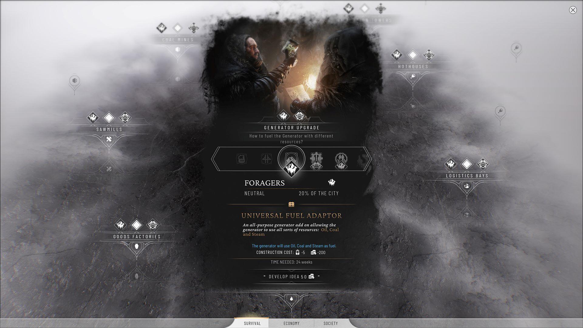 Relations with each faction can also be impacted by research. Like the first game, Frostpunk 2 has a research building which unlocks a research tree. Most research options present the player with additional options proposed by each faction, all with unique modifiers that may help, or hinder, the citizens of New London. One option may increase squalor but decrease the city’s heat demand, another may decrease disease but increase housing demand. It’s up to the player to decide what’s best for their city and how they want to balance the city’s needs.