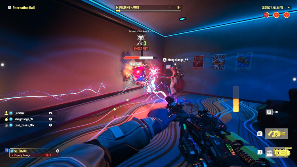 As said before, you can also play the game as a ghost, and it’s one scary fun experience! Just like the Ghostbusters, the ghost can level up as you play. While you play, it’s your goal to haunt the location while taking on the Ghostbusters. You can possess and haunt items in the world, which makes this game an amazing version of prop hunt. As the Ghostbusters search for you, possessing items like chairs, teddy bears, barrels, and more not only is thrilling but can confuse the players as well.