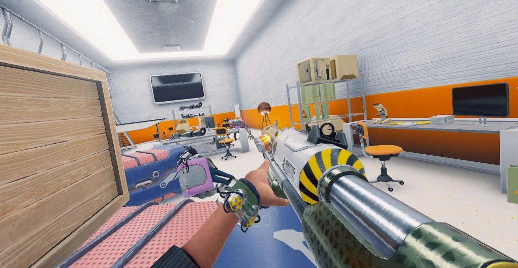 Speaking of weapons, all the weapons in the game are insanely fun and creative to use. Each gun basically has unlimited ammo, but you need to press a button to release the guns specific cartridge and then reach down to grab a reload and slam it into the gun. Most of the guns animations are automatic so you don’t need to worry about stressful mechanics like other titles. To me this is enough involvement to make it feel authentic, and fun, and gets just hectic enough in tense situations with tons of enemies. And all the guns are unique too. So some guns might release the cartridge from the front, while other guns will pop open at the top.