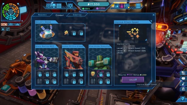 A problem I ran into was the layout I’d crafted didn’t work for my bigger attack units to navigate. Perhaps it’s a planning issue on my part, but in the heat of the moment (and the pressing needs of your residents) it can be tough to gauge when you’re setting up new areas. As such, there were times I had to completely re-arrange a room in order to allow for my units to proceed.
