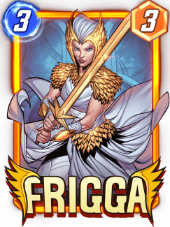 Debuting alongside Surtur this week is Frigga, the mother of Thor and Queen of Asgard. Frigga is a 3-Cost, 3-Power card with an On Reveal ability that reads: “Add a copy of the last card you played to your hand. (if able)”