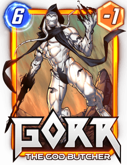 There’s no two ways about it: Gorr is going to get really, really big. On Reveals are probably the most-played card type in the game. Even the Ongoing deck lists that run almost nothing but Ongoing cards still tend to bring along Spectrum for her On Reveal ability to buff the other Ongoing cards, and most decks will be playing significantly more On Reveals than one per game. In the most ideal (and unrealistic) of circumstances, a Gorr played into the last open space of a Marvel SNAP board with every single other space filled with On Reveals on both sides would mean that Gorr reveals at a whopping FORTY FIVE power. This is probably never going to happen, but the fact that it can means that Gorr probably has the highest power ceiling of any card that has ever been released into Marvel SNAP.