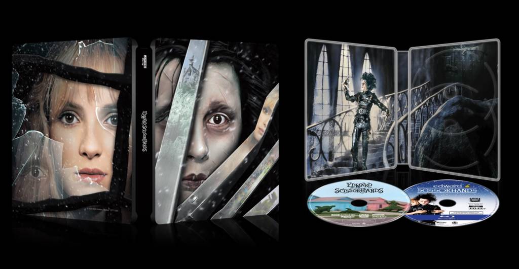 For collectors and fans, a hauntingly beautiful SteelBook® encases the classic film. The exterior features striking artwork, with Kim’s face reflected in shattered glass on the front and a detailed close-up of Edward’s compelling gaze on the back. The interior reveals a captivating illustration of a gothic Edward in all his leathered, studded and bladed glory. This limited-edition set includes both the 4K Ultra HD and Blu-ray discs, making it a must-have for any enthusiast.