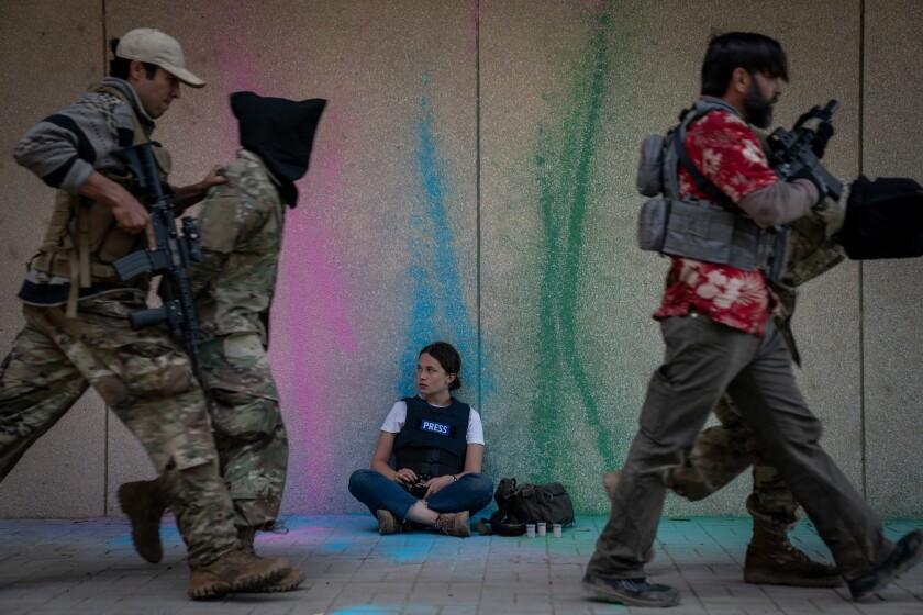 By not providing a concrete reason for the conflict, Garland’s film suggests the flaws of humanity make it inevitable. He reinforces this theme by peppering in accounts of people who are pretending the war isn’t happening, as if to suggest their ambivalence played a role. The film contrasts the experiences of those people with their heads buried in the sand by spinning a narrative around those who are paid not to: war correspondents.