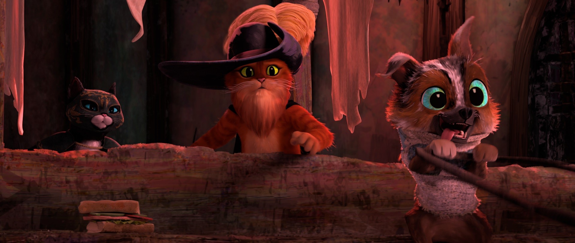 Then there’s the surprising amount of emotional depth. As the story focuses on Puss having to—at last—come to terms with his own mortality, audiences are given a greater connection to character overall. As we see him struggle with understanding the “meaning of life” and what it means to have people to share it with, it does an excellent job of growing the character in ways that go well beyond the archetype he’s fallen into over the course of the Shrek franchise.