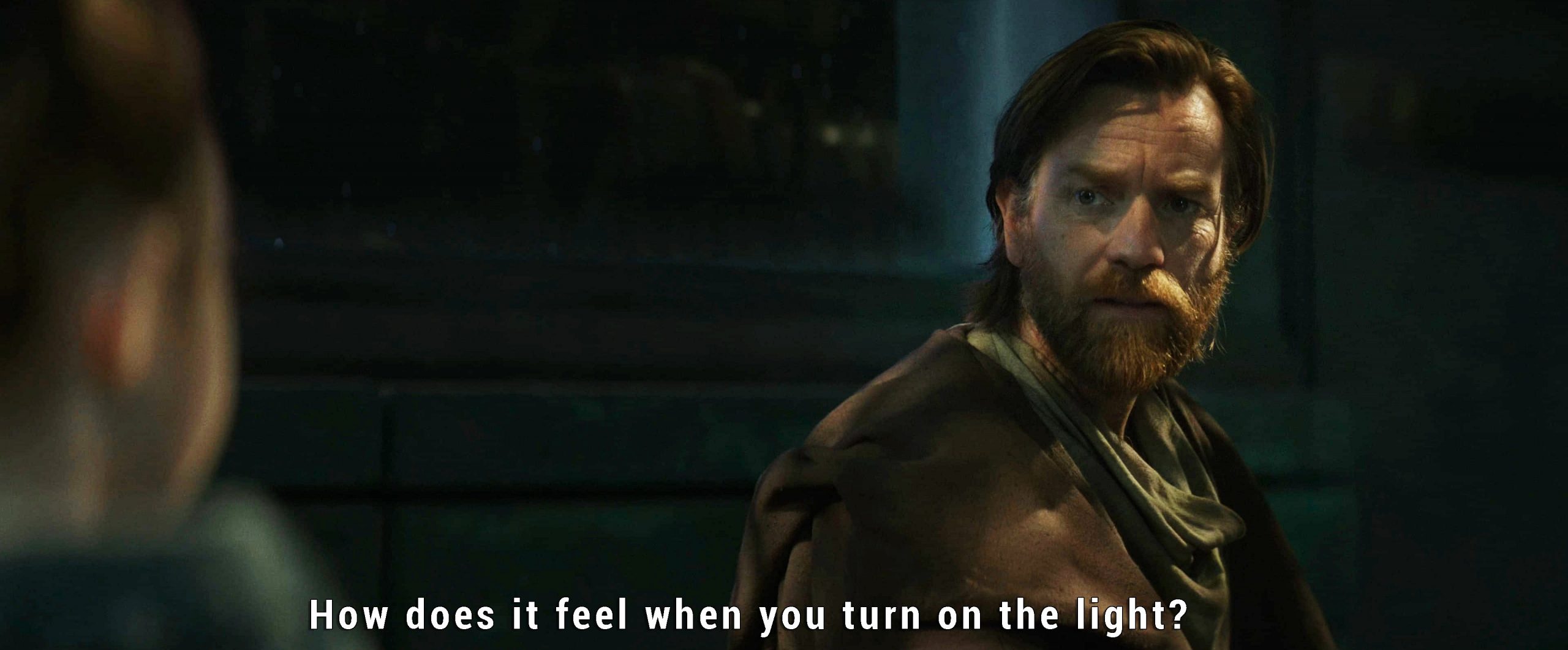 As Leia asks Obi-Wan what the Force feels like, he engages her with a question of his own, “Have you ever been afraid of the dark?” When Leia says yes, Kenobi then asks, “How does it feel when you turn on the light?”
