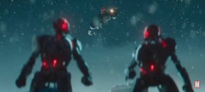 In a blink and you’ll miss it shot, Hawkeye leaps into what looks like the same facility that Captain America: Civil War’s final confrontation took place in. Considering we also see a swarm of Ultron’s flying up this same structure, I assume this is how Hawkeye meets his end in that reality.
