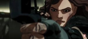 Later on, a shot of Pepper, armed with a large high-tech gun, Shuri and the Dora Milaje seems to imply an alliance in the same episode. Perhaps unlike in Black Panther, Killmonger wins the throne and keeps it, so Shuri is forced to seek allies elsewhere to remove her brother’s killer from the throne.