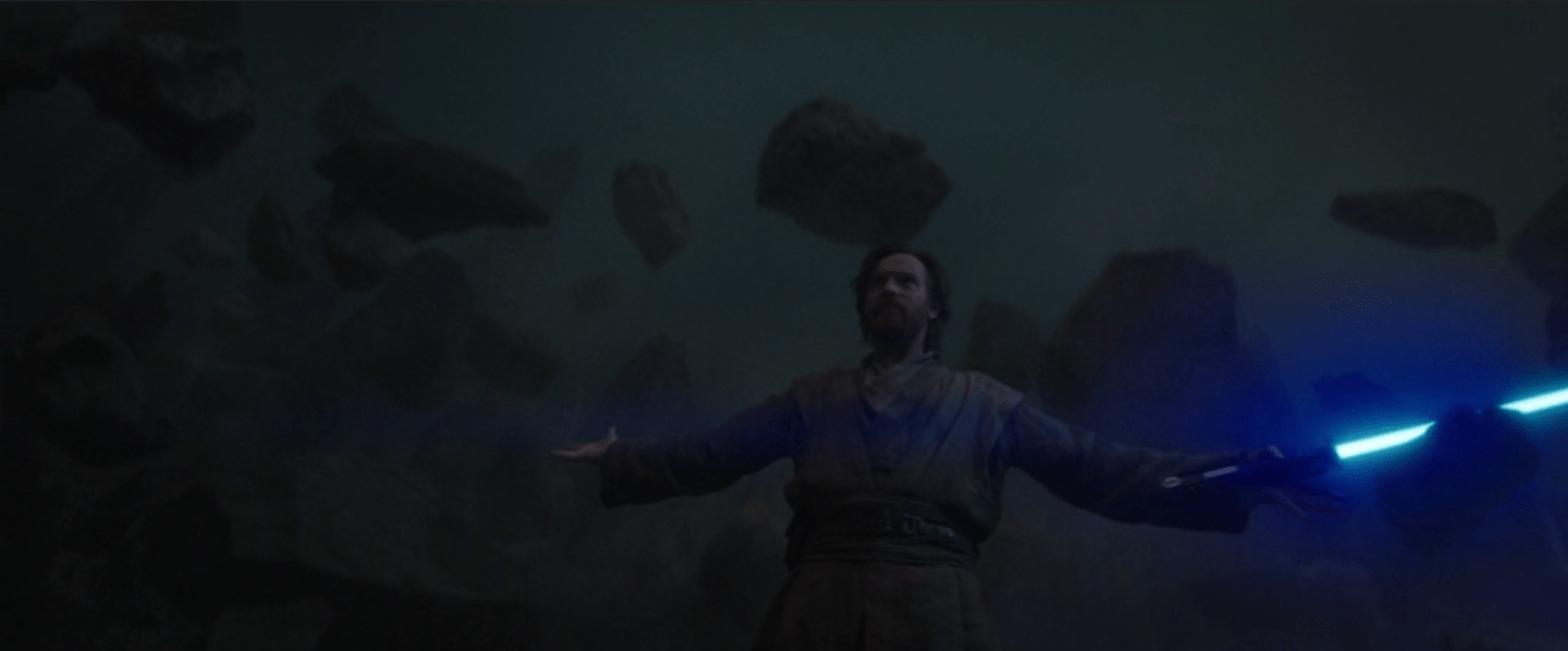 There are some serious “holy shit” moments (like Obi-Wan’s barrage of rocks), but the fight scene’s strength lies in the emotion behind it. The dialog between them is almost as impactful as the blows they land. Sure, some of this comes with the help of the history we know from the films/cartoon, but Obi-Wan Kenobi has done a phenomenal job reminding us of the close bonds between Anakin/Vader and Obi-Wan. The result is being able to feel the weight of all that past within the context of their actions and dialog.