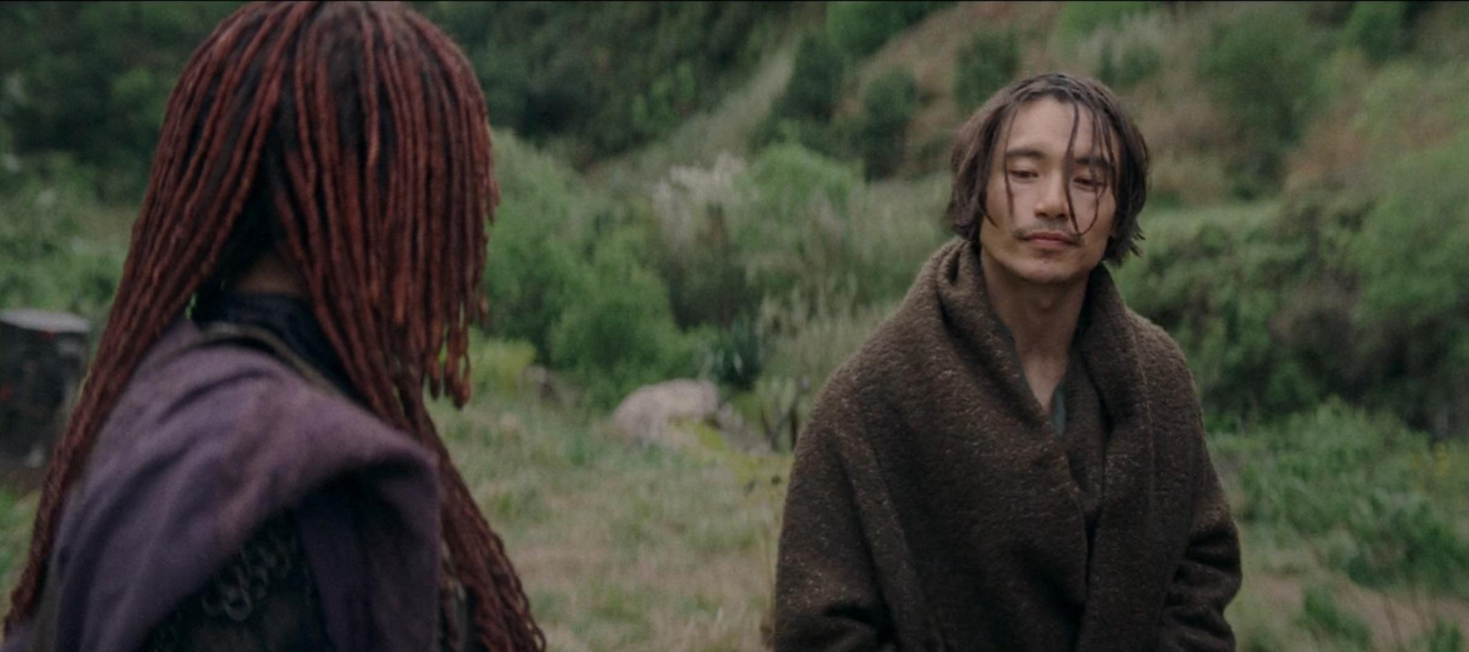 Mae, meanwhile, is trekking through the dangerous forest of Khofar with Qimir guiding the way. Between the two of them, we get a tad more insight into the “Master” they’re working for. It’s not much, but gives a good sense of background/history that makes it clear Mae’s been training with this person for quite some time now.