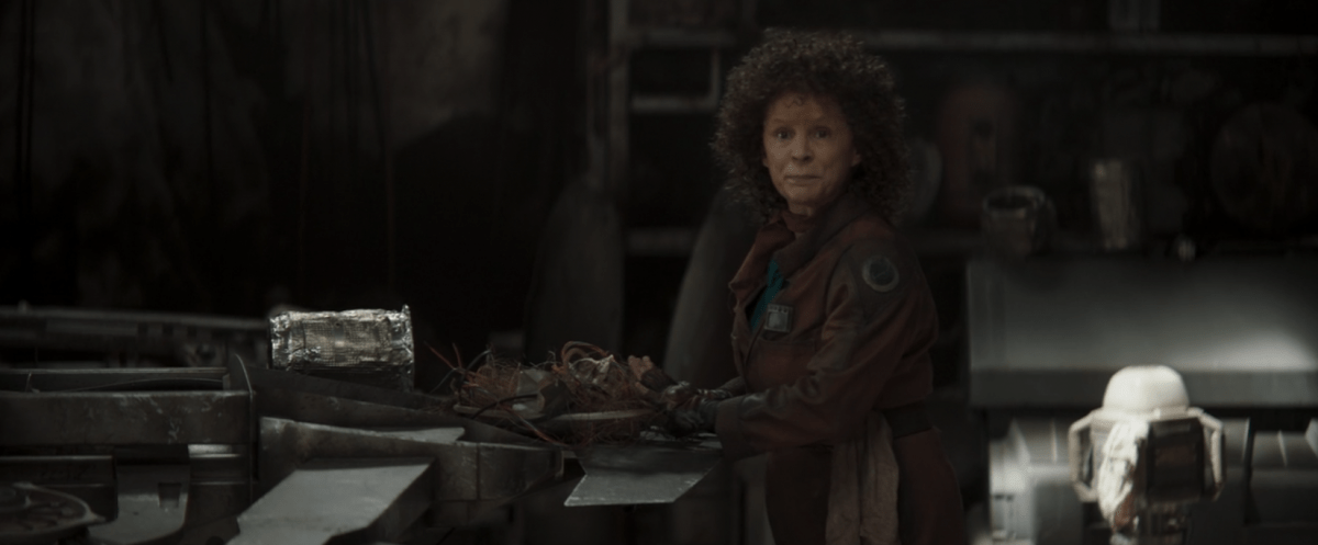 After the Armorer gave Din his jetpack and signet, it’s implied that she was leaving to go in hiding elsewhere. With the second time completely focused on Din’s quest to find Grogu a home, we haven’t seen what happened to the Armorer. Thankfully, that’s exactly who Din finds in the underbelly of the ring world.