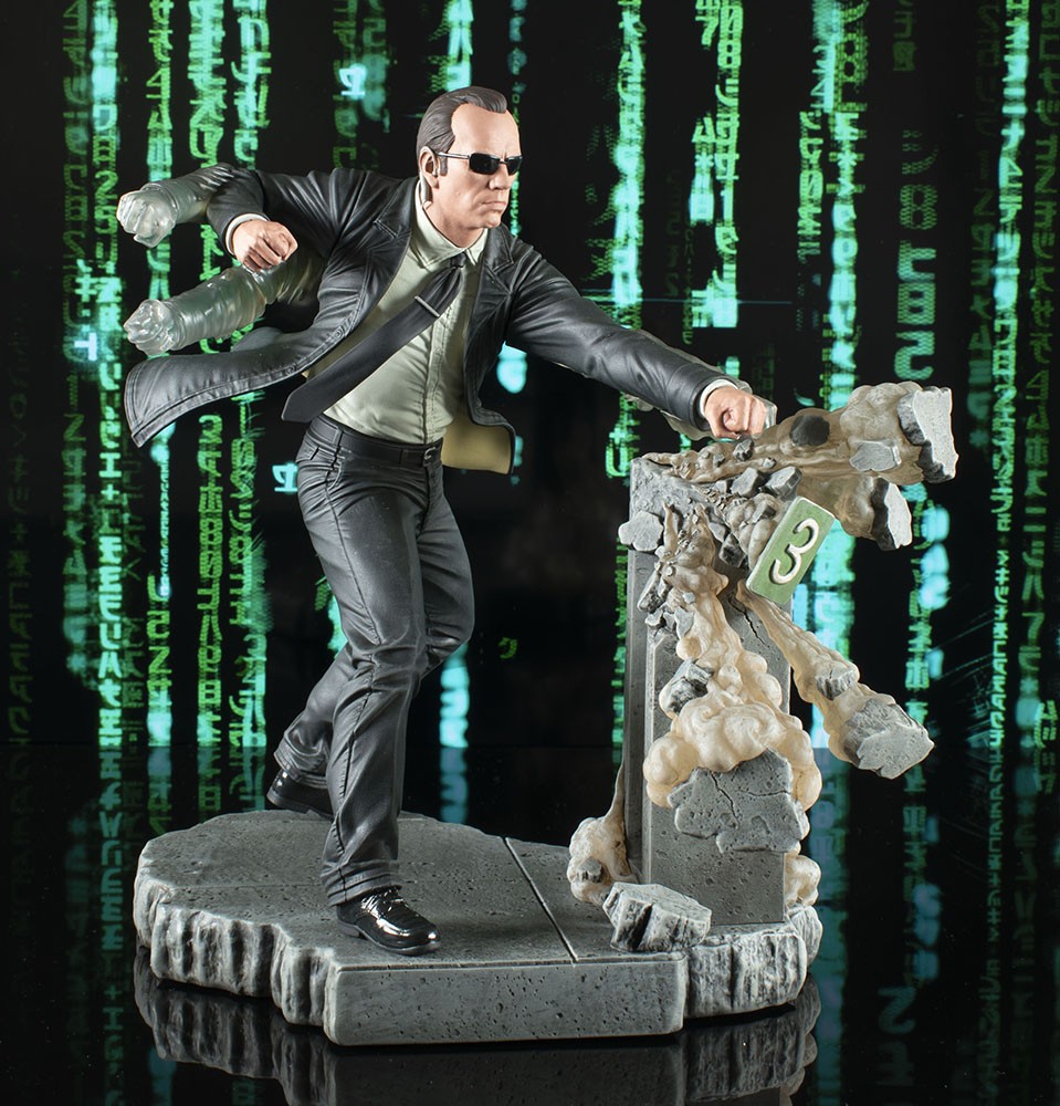 Beginning in 2024, DST will release a new line of Gallery Dioramas inspired by scenes from the original Matrix films. Each dynamic sculpture will be approximately 1/8 scale, measuring 9-12 inches tall, and each is made of high-quality PVC in a full-color window box. The first piece, depicting Agent Smith smashing through a pillar, will feature multiple translucent limbs to capture the speed of his punches, and is available for pre-order at DiamondSelectToys.com. Future pieces will include Neo, Trinity and Morpheus.