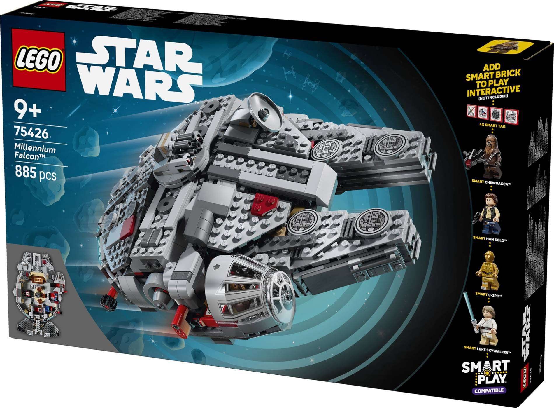 With four LEGO minifigures, including SMART Han Soloâ„¢ SMART Chewbaccaâ„¢, SMART C-3POâ„¢ and SMART Luke Skywalkerâ„¢, as well as four LEGO SMART Tags, the set lets builders explore new and exciting functions when paired with a LEGO SMART Brick. For the first time within LEGO Star Wars, fans can jump into light speed, shoot lasers from the stud shooters, play holochess or practice lightsaber skills with LEGO SMART Play.