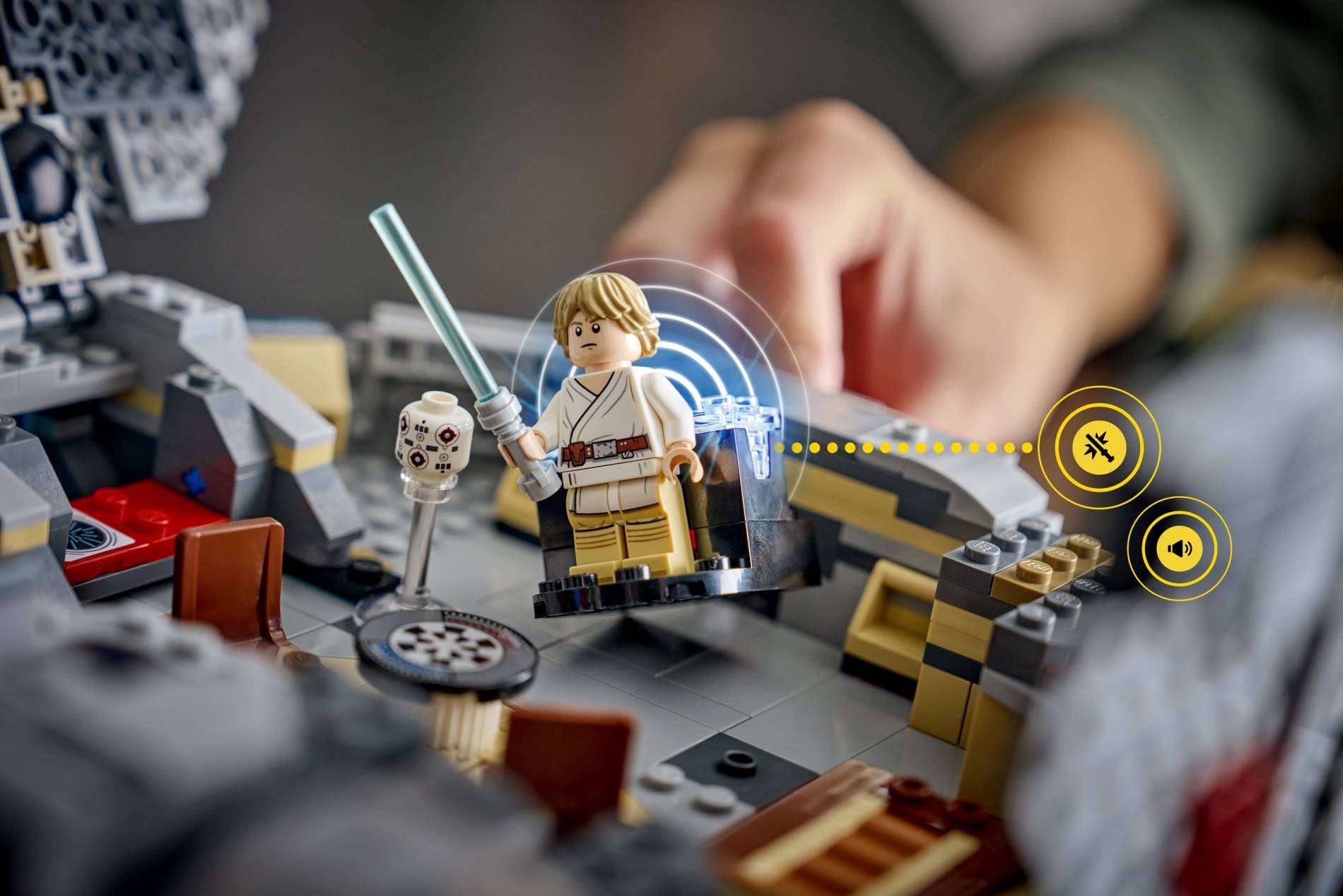 Builders can recreate scenes from Star Wars: Return of the Jedi with motion-activated, dynamic sounds and lights, including the AT-ST walking sounds, laser cannons and the speeder chase, when paired with a LEGO SMART Brick.