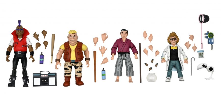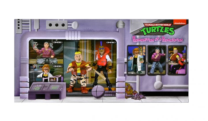 The “Pre-Mutation” pack brings together Bebop and Rocksteady, Hamato Yoshi, and Baxter Stockman (marking the debut for this figure), in their human forms with a whole bunch of accessories to go with it.