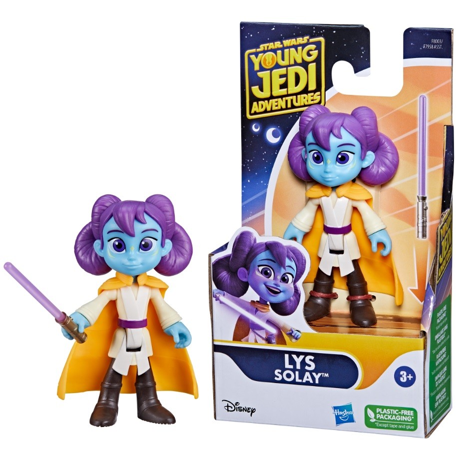 Speed off into adventure with this STAR WARS: LYS SOLAY FIGURE & SPEEDER figure inspired by the action-packed YOUNG JEDI ADVENTURES animated series on Disney+. This 4-inch-scale Lys Solay figure features a molded-on helmet, purple Lightsaber accessory and multiple points of articulation for fun, poseable play. Lys fits right into her included speeder bike and her hands can even attach to the handles. The speeder bike features wheels on the bottom, so Lys is ready to roll right out of the package! Includes figure, vehicle, and accessory.