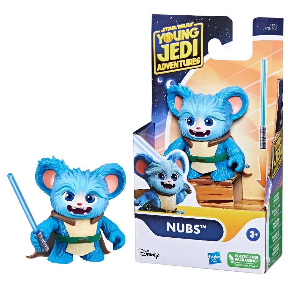 Speed off into adventure with this STAR WARS: NUBS FIGURE & SPEEDER figure inspired by the action-packed YOUNG JEDI ADVENTURES animated series on Disney+. This 4-inch-scale Nubs figure features a molded-on helmet, blue Lightsaber accessory and multiple points of articulation for fun, poseable play. Nubs fits right into his included speeder bike and his hands can even attach to the handles. The speeder bike features wheels on the bottom, so Nubs is ready to roll right out of the package! Includes figure, vehicle, and accessory.