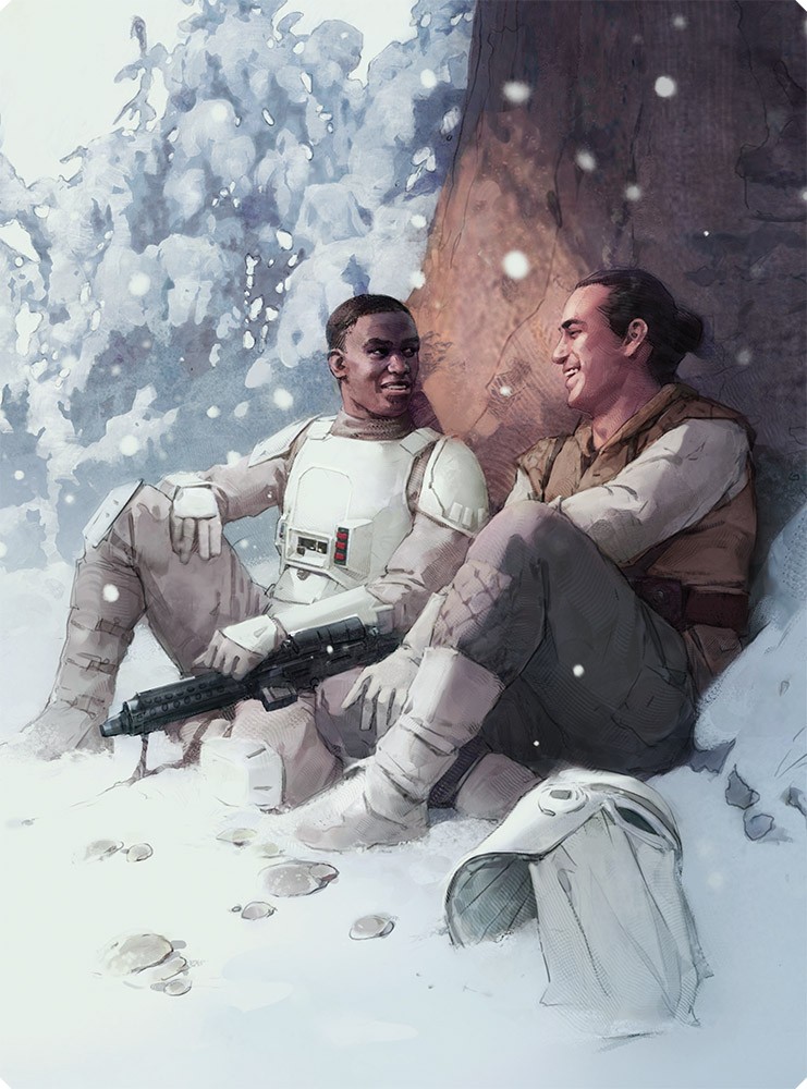 Anyways, their reunion happens on a moon called Shard in the Outer Rim as Rel is sent on a scouting mission and runs into a Stormtrooper (who is alone for some reason), and who is humming a song they sang as youths. Luckily neither has a shoot-first-ask-questions-later type of instinct and the reunion is under way. Yes, Imperial Max and Rebellion Rel find themselves on opposites sides of this galactic war, simply disposable cogs in this machine the Emperor calls a good time.