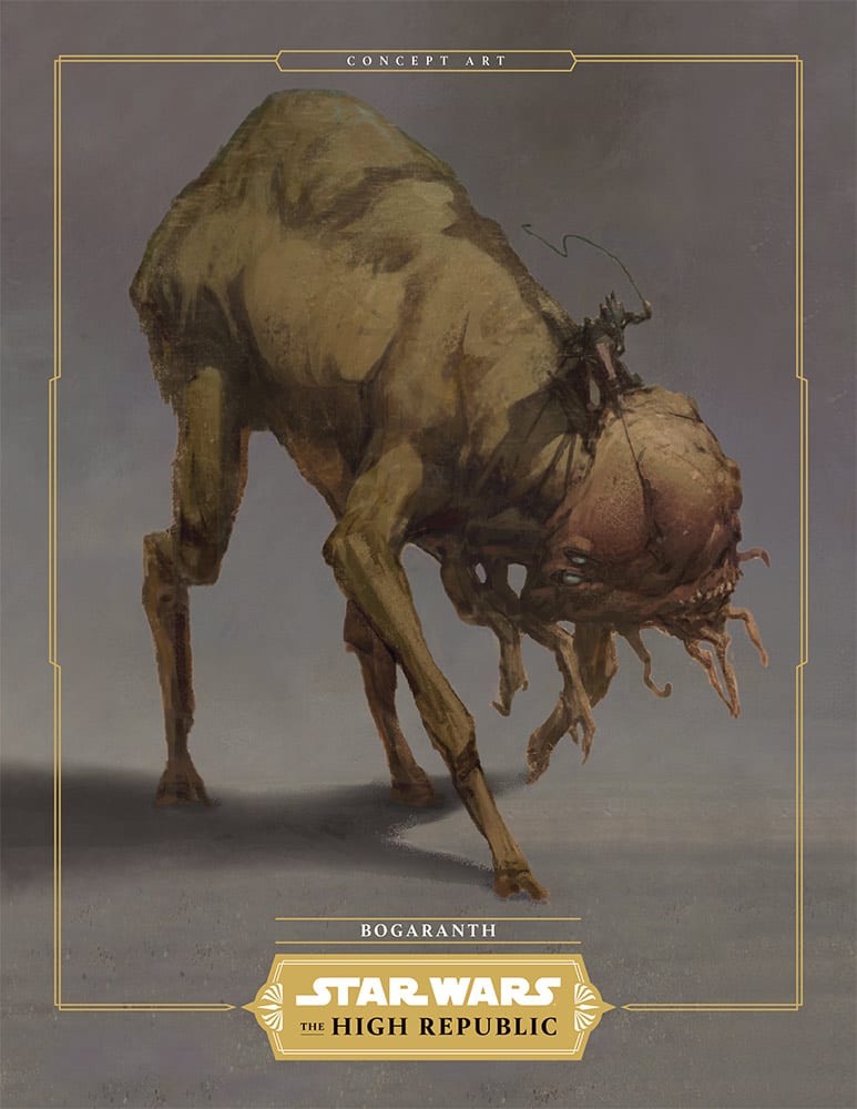 In one of the bits of concept art, we get our first look at the Nihil creature, the Bogaranth, who makes its debut in IDW’s Star Wars: The High Republic Adventures #3. All that was revealed was that, “Bogaranths are ravenous beasts that leave a trail of slime in their wake as they do battle inside the Nihil arenas.”