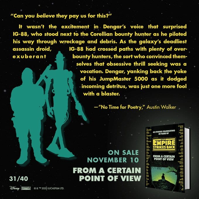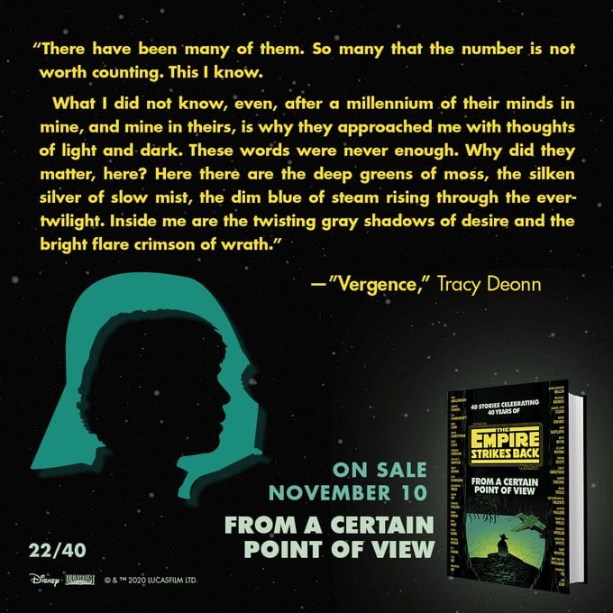 On May 21, 1980 Star Wars became a true saga with the release of The Empire Strikes Back. In honor of the fortieth anniversary, forty storytellers recreate an iconic scene from The Empire Strikes Back through the eyes of a supporting character, from heroes and villains to droids and creatures. From a Certain Point of View features contributions by bestselling authors and trendsetting artists.