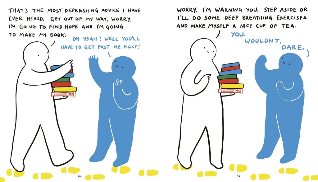 I suspect most, if not all, of the population can identify or relate to at least one of these three states of being. For myself, I’ve never been accused of #1 or #2, but I go for daily laps in #3’s swimming pool. Point being, and what Worry Lines does so well, is break down any misconceptions that regardless of your situation, there’s someone out there who can relate in some way. We all know people who get anxious, who get stressed, who get down, and whether we like to admit it or not, we do to. And if you leave this book with anything, it’s that not only is it okay to feel a relative sense of unease, but that you’ve got company.