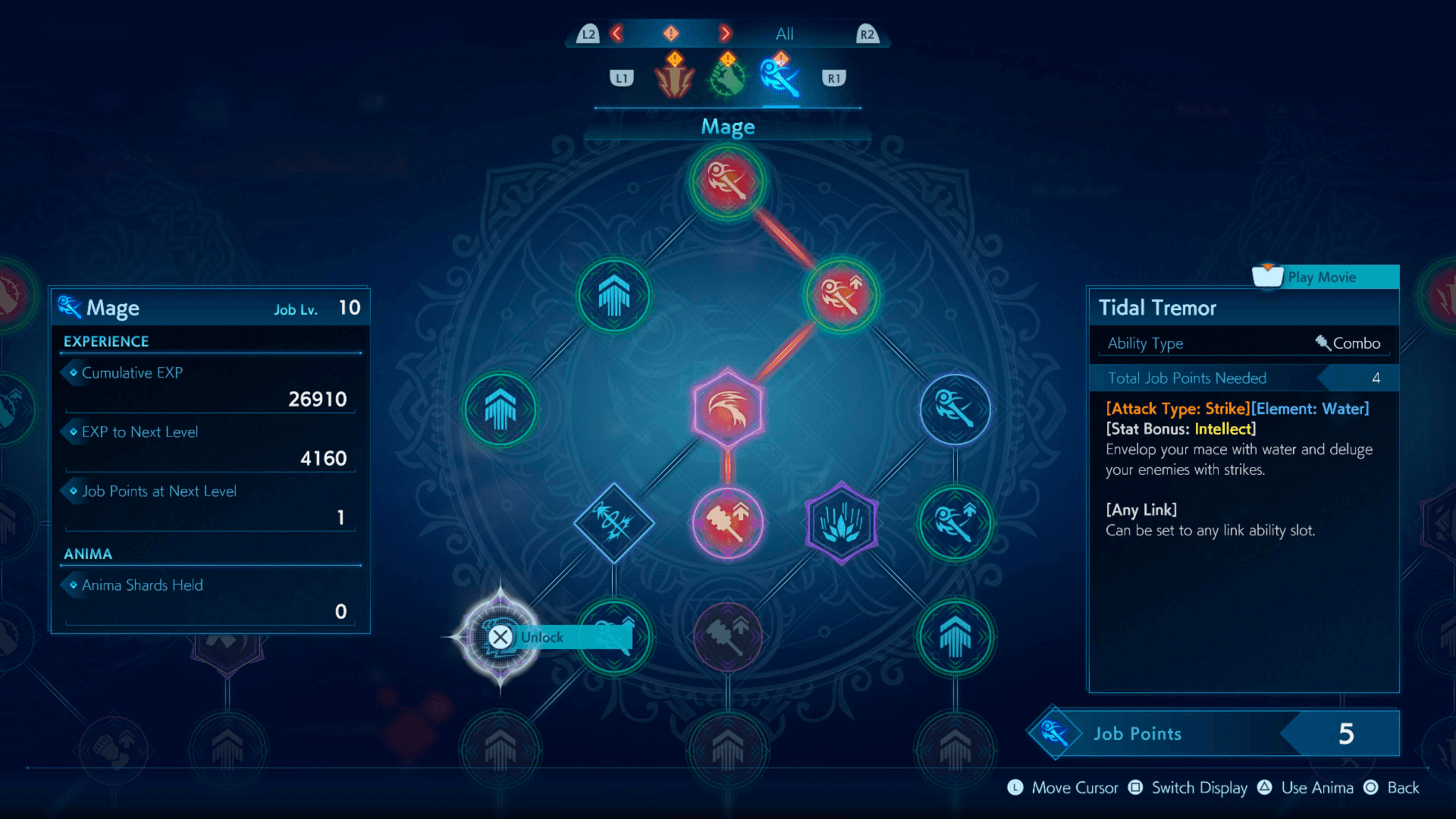 By defeating enemies and levelling up, you will obtain Job Points, which can be used to learn new abilities and unlock new jobs in the Skill Tree.