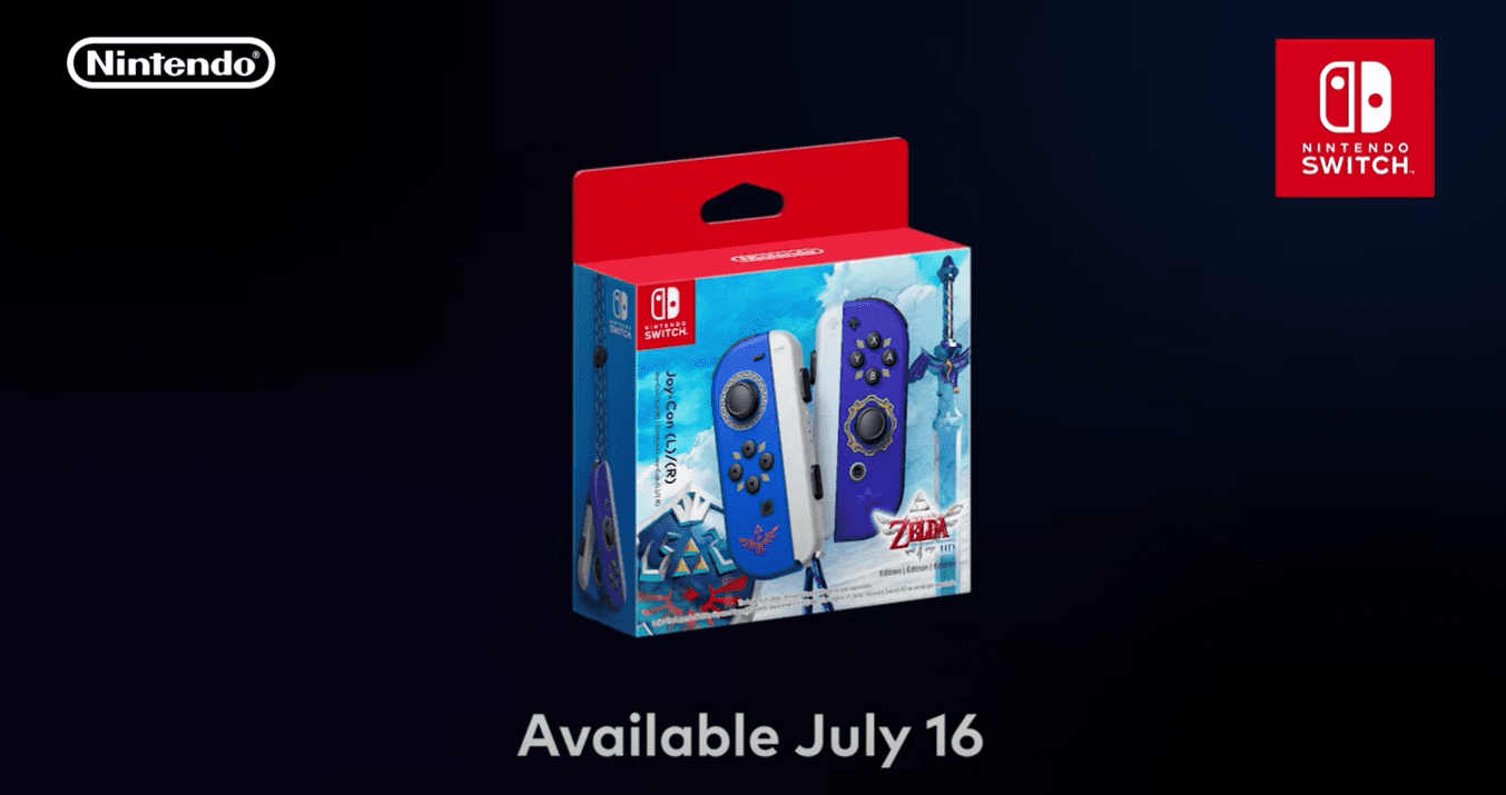 To celebrate the remaster of The Legend of Zelda origin story, Aonuma revealed two Zelda-themed joycons. The left Joycon is designed after the iconic Shield of Hyrule, while the right is designed based on the legendary Master Sword. These Joycons will be available on July 16.